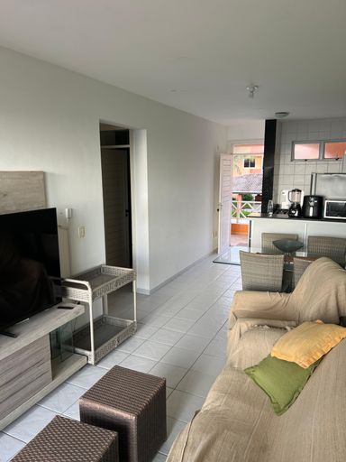 Com 57m², distribuído em 2 quartos sendo 1 suíte, varanda, sala ampla, cozinha com armários e garagem.