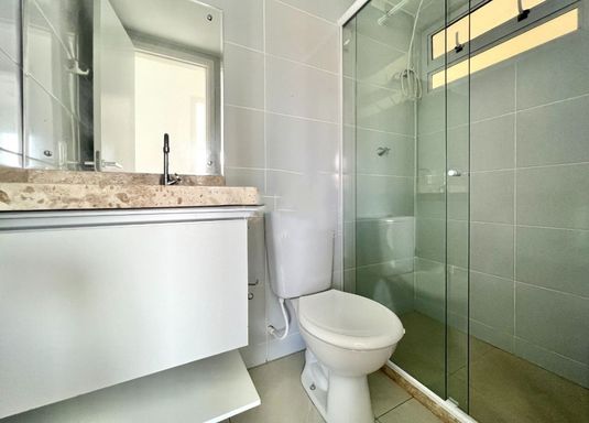 Com 02 quartos sendo 1 suíte, sala para 2 ambientes, cozinha americana, varanda com uma vista maravilhosa para a base aérea , 1 banheiro social, 57m² de área privativa.