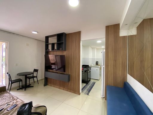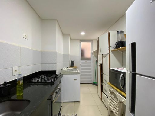 Apartamento no Térreo, 2 quartos, móveis projetados, sala para dois ambientes, 1 wc social, cozinha com bancada em granito, área de serviço, varanda.