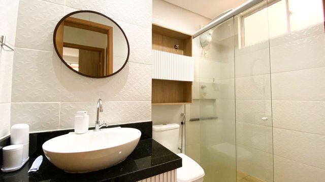 Além disso, o imóvel possui 1 vaga de garagem privativa e segurança com reconhecimento facial, guarita elevada, câmeras por todo o condomínio.