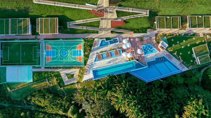 Na área de lazer, você terá um complexo aquático e esportivo completo. Quadras de vôlei, poliesportiva, campo society, piscinas adulto e infantil, academia equipada, salão de jogos, salão de festas, vários espaços gourmet e muito espaço verde para sua família se conectar mais com a natureza e ter todo o conforto de um lar moderno.