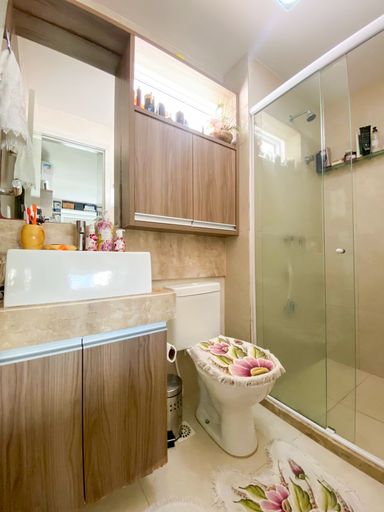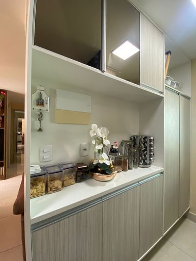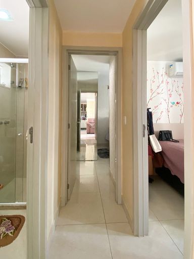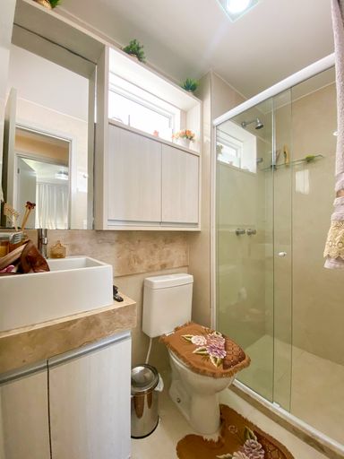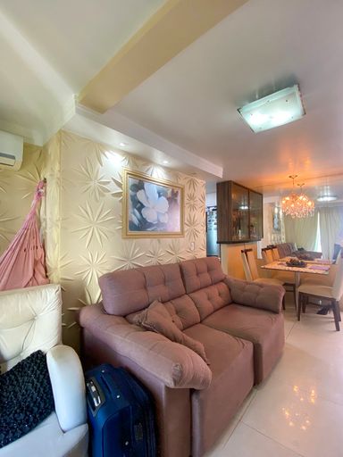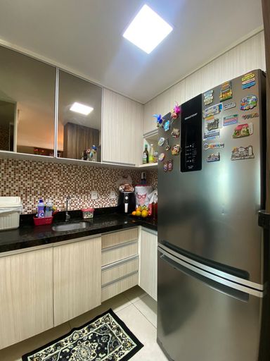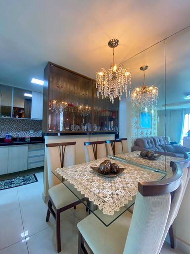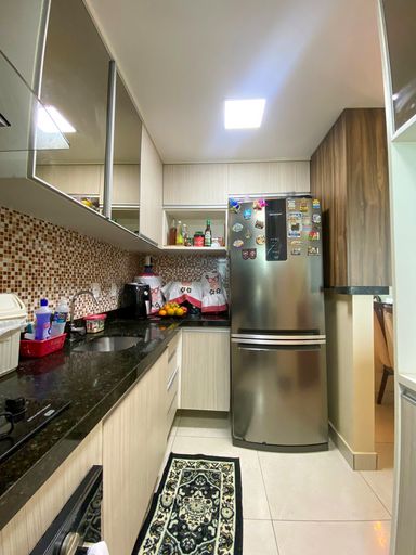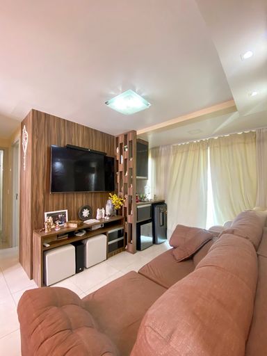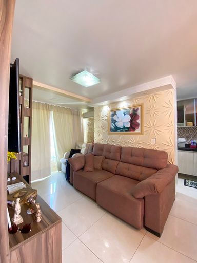 Apartamento com 57m², 2 quartos, sendo 1 suíte, Sala para dois ambientes (estar e jantar), Banheiro social, Cozinha funcional integrada a Área de serviço, 1 vaga de garagem.