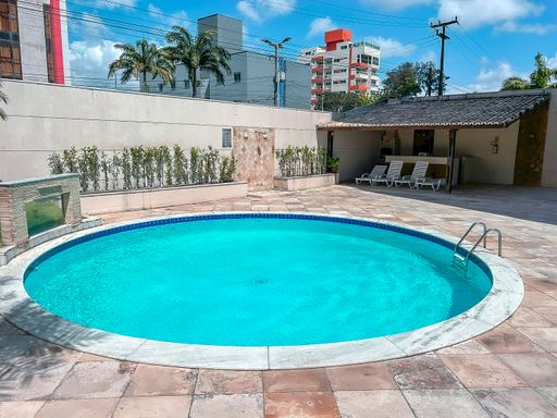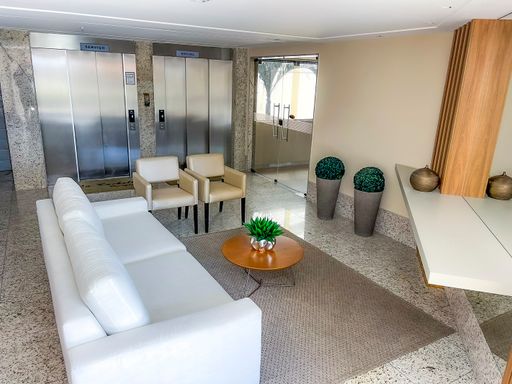 Elevador, piscina e churrasqueira na área de lazer.