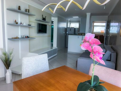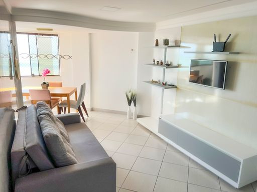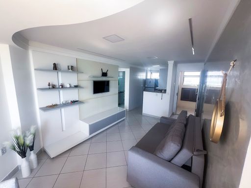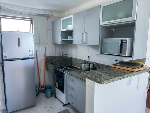 Apartamento de 70m², mobiliado, 2 quartos, 1 banheiro, Sala de estar, Sala de jantar, Cozinha com projetados, 1 vaga de garagem.