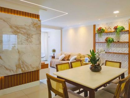 Acabamentos de alto padrão: Piso em porcelanato, iluminação em LED, e design contemporâneo.