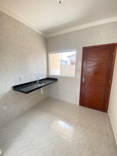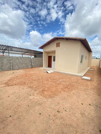 A casa 50m² de área construída, num terreno de 200m², possui 2 quartos, sala para dois ambientes, cozinha com bancadas em granito preto, banheiro social, área de serviço, amplo quintal, garagem para dois carros cobertos.