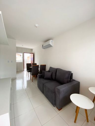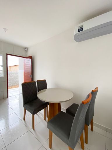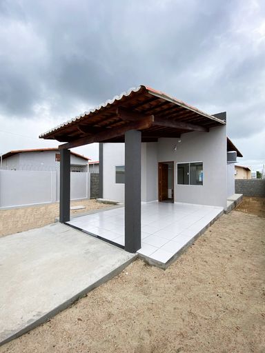A casa 55m² de área construída, num terreno de 200m², possui 2 quartos, sala para dois ambientes, cozinha com bancadas em granito preto, banheiro social, área de serviço, amplo quintal, garagem para dois carros cobertos.