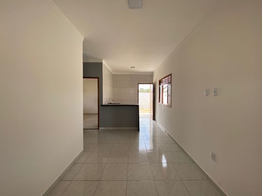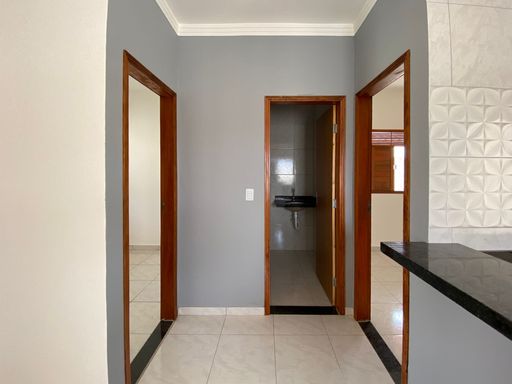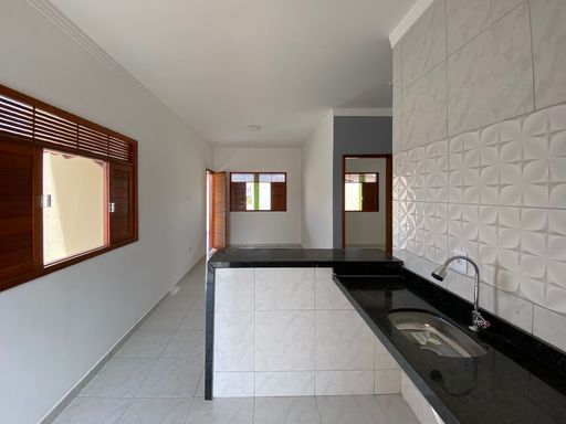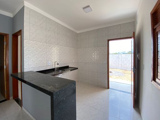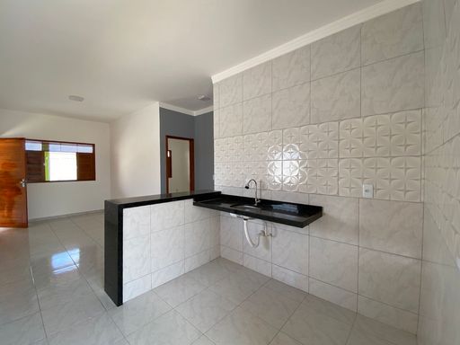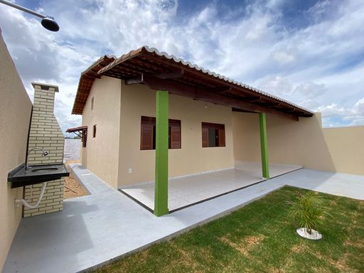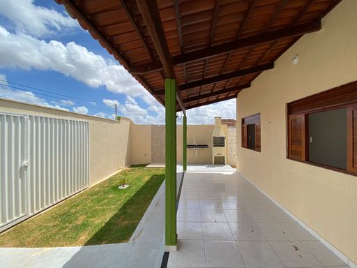 A casa possui 2 quartos, sala para dois ambientes, cozinha com bancadas em granito preto, banheiro social, área de serviço, amplo quintal, garagem para dois carros cobertos, espaço goumert com churrasqueira e jardim.