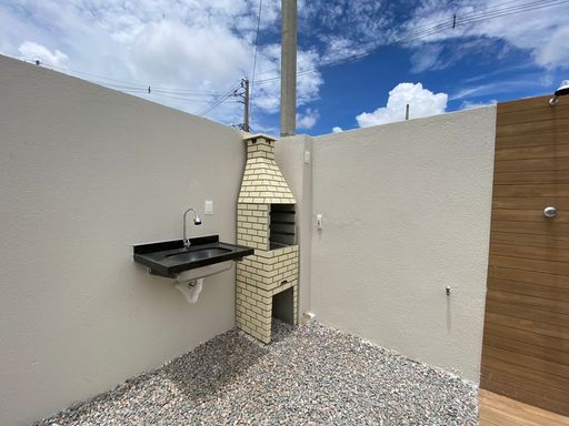 Planta planejada com predisposição para ampliações futuras, Bancadas em granito na cozinha e banheiros, Revestimentos cerâmicos em toda casa com dimensões 58x58cm aplicados, pisos e paredes da cozinha, banheiros e área de serviço, Infraestrutura preparada para gás, Luminárias internas e externas já instaladas, Pontos elétricos para chuveiros, Pontos elétricos preparados para ar-condicionado, Churrasqueira, Estrutura com laje em toda a casa.