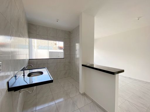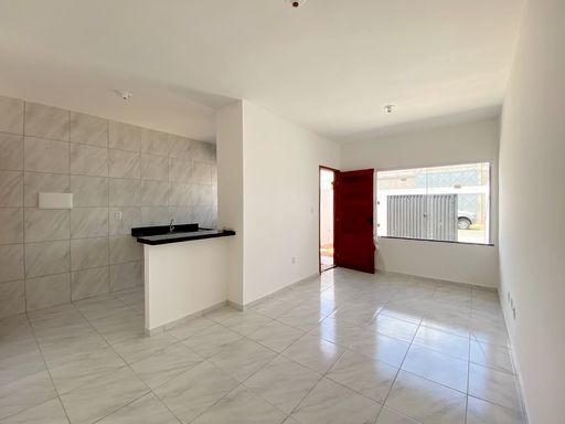 Casa nova térrea dividida entre os ambientes: sala, 02 quartos, banheiro social, cozinha americana, área de serviço, 02 Vagas de Garagem, quintal amplo, com 60m² de área construída.