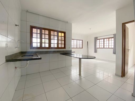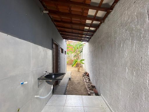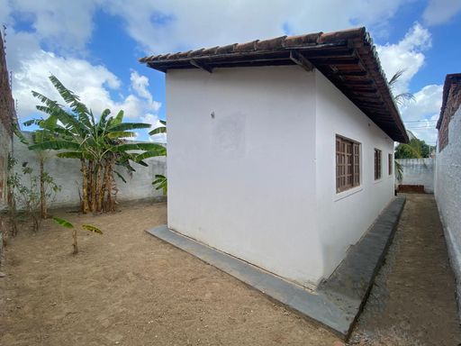 Casa usada, lajeada, porta em madeira, janelas de madeira, cozinha com revestimento, bancadas em granito, corredores nas duas laterais, terreno amplo 10x20, quintal amplo.