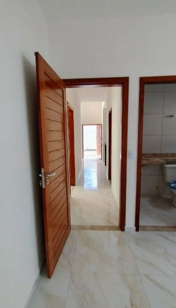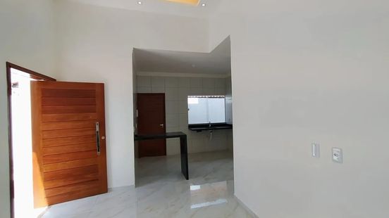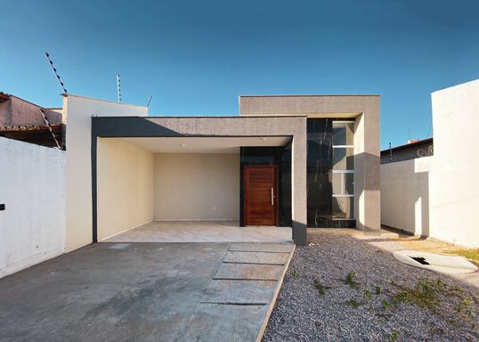2 quartos, sendo 1 suíte , 1 banheiro sócial, Sala com pé-direito duplo, Cozinha, Garagem coberta para 2 veículos, Área de serviço coberta, 80m² de área construída, Casa individual, Terreno medindo 10x20.