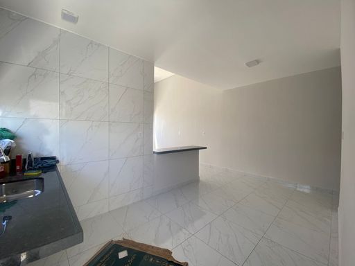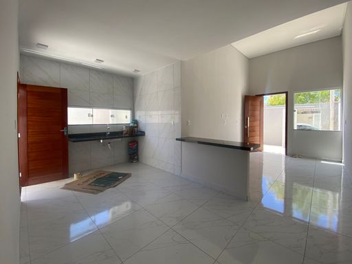 Terreno de 140m², 84m² de área construída, 2 quartos, sendo 1 suíte , 1 banheiro sócial, Sala com pé-direito duplo, Cozinha, Garagem coberta para 2 veículos, Área de serviço coberta.
