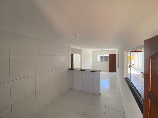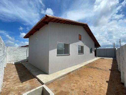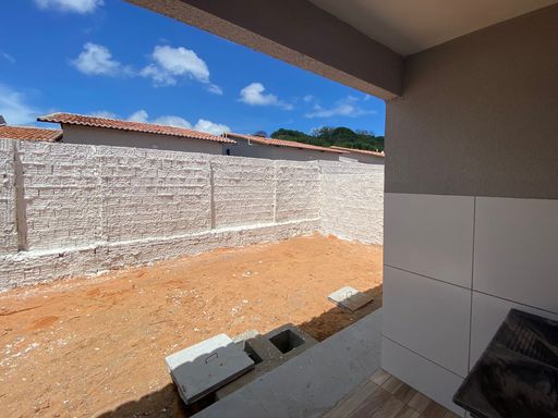 Casa nova térrea dividida entre os ambientes: sala, 02 quartos sendo 01 suíte, banheiro social, cozinha americana, área de serviço, vaga de garagem, quintal amplo.