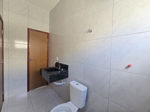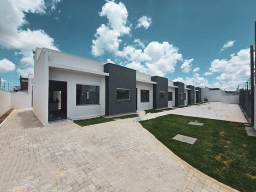 Casa de condominio , lajeada, porta em madeira, janelas com esquadrias de alumínio, gradeada , cozinha com revestimento, bancadas em granito, área de serviço coberta , acabamento moderno.