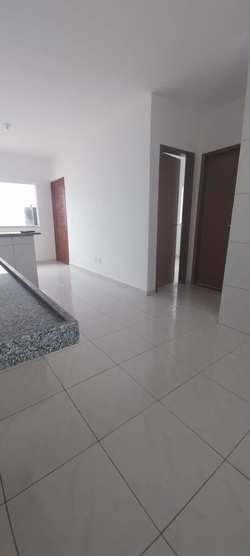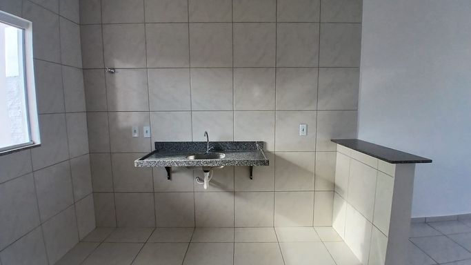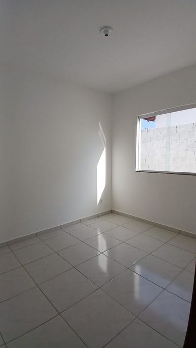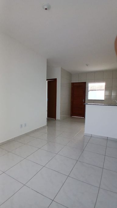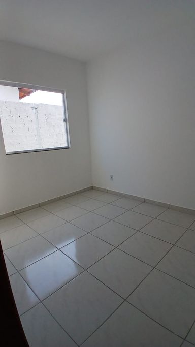 Casa nova térrea dividida entre os ambientes: sala, 02 quartos, banheiro social, cozinha, área de serviço, vaga de garagem, quintal amplo.