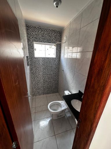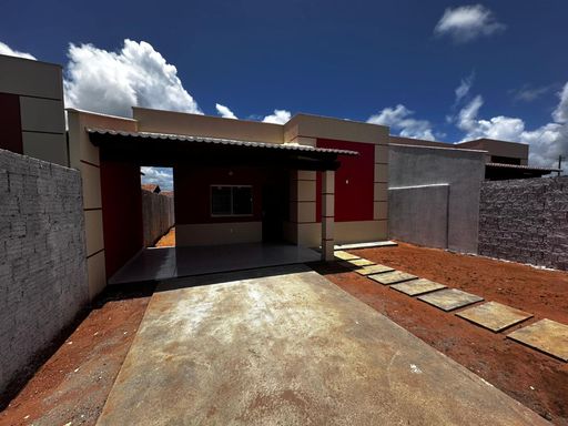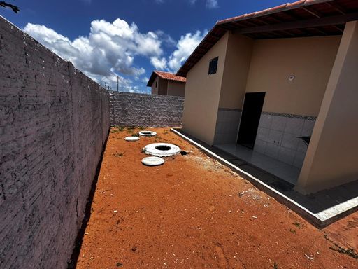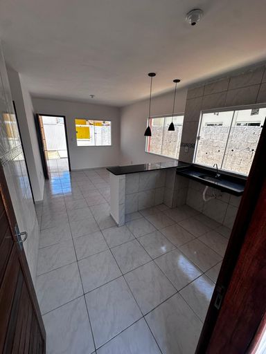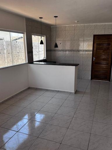 Casa nova térrea dividida entre os ambientes: sala, 02 quartos, banheiro social, cozinha americana, área de serviço, vaga de garagem, quintal amplo.