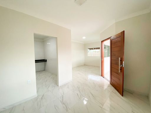 Casa térrea, com 110m² de Área construída, Garagem para dois veículos, Sala para dois ambiente; 03 quartos, sendo duas suíte sendo um closet; Jardim de Inverno; Cozinha bancada; 1 Banheiro; Dispensa; Área de serviço.