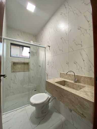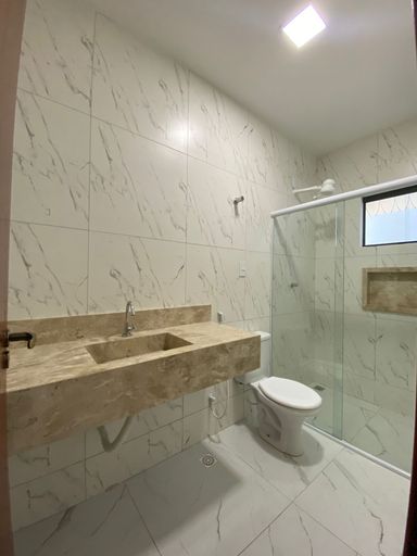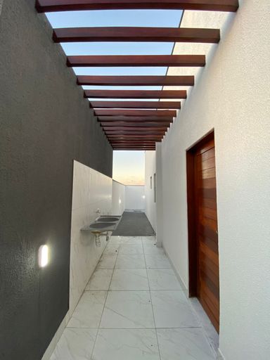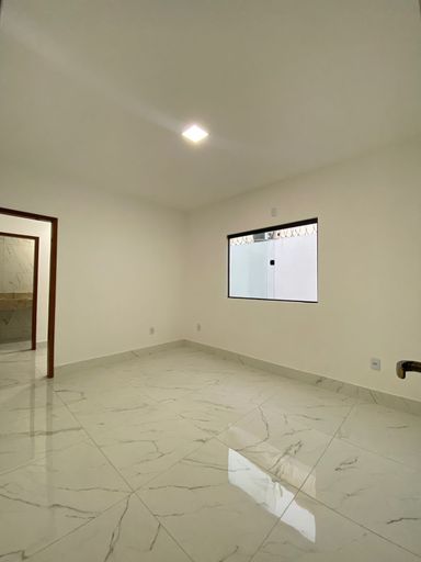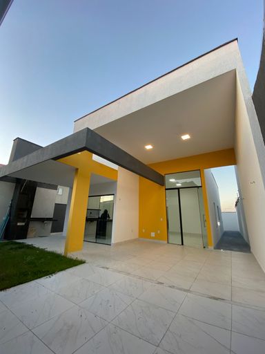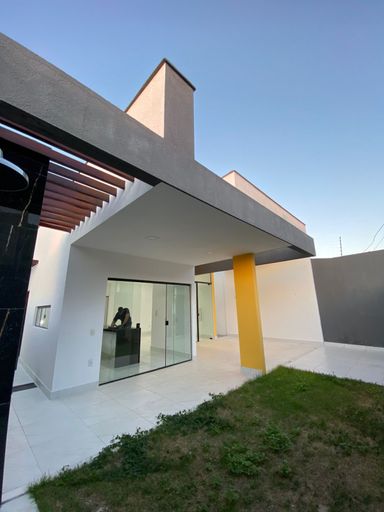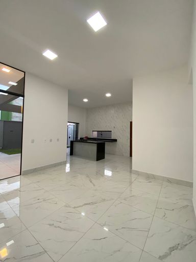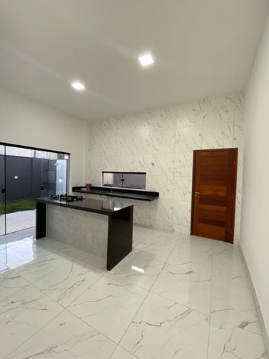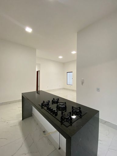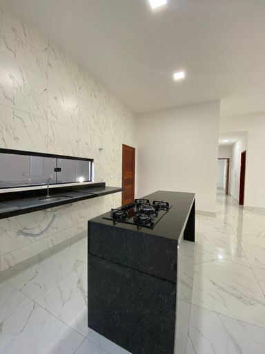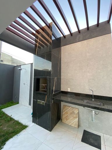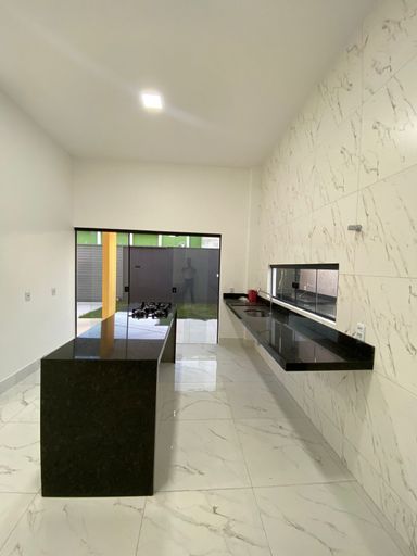 Casa com pé direito alto, com 3/4 sendo uma suite com closet, 1 banheiro social, sala para 2 ambientes, cozinha ampla com ilha e cooktop instalado, área gourmet e garagem para 3 carros, espaço para fazer uma piscina junto a área gourmet caso queira.