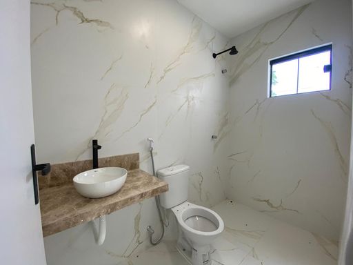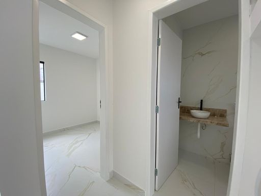 Casa Duplex, com 60m² de Área construída, Garagem para dois veículos, Sala para dois ambiente; 03 quartos, sendo duas suítes; Cozinha bancada e cooktop; 1 Banheiro; Área de serviço.