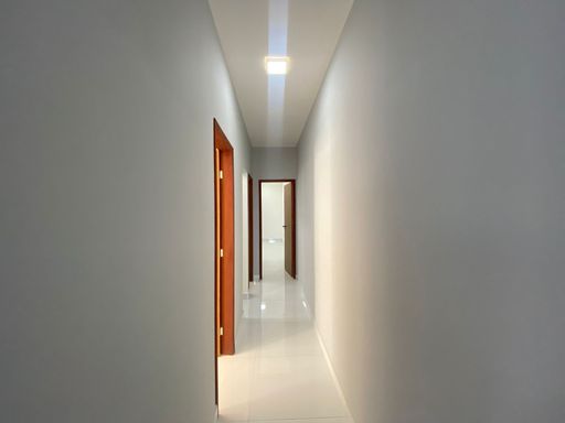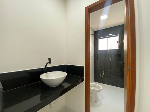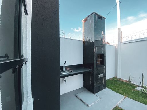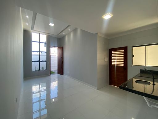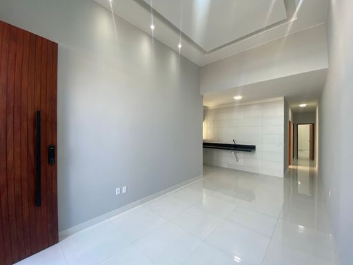 Sala para dois ambientes, Garagem ampla, 3 quartos sendo 1 suíte com closet,  Dois Banheiros, área serviço coberta, Piso Porcelanato, Cerca elétrica e concertina, Cozinha com bancada em granito, Quintal, Lindo jardim na frente, 90m² Área construída.