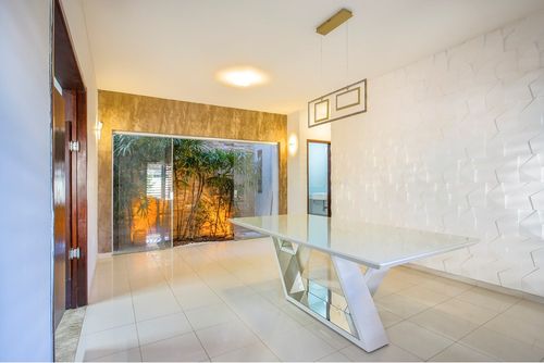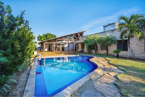 Casa terrea com 1.000m² de terreno, 392m² de área construída, 4 quartos, sendo 2 suítes (incluindo suíte master com hidromassagem) 1 escritório com banheiro, Sala de estar para dois ambientes, Cozinha principal com ilha, cozinha auxiliar, Área de serviço reservada, Área gourmet externa, Quintal amplo com sistema de irrigação automática, Garagem para 3 veículos.