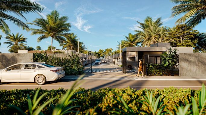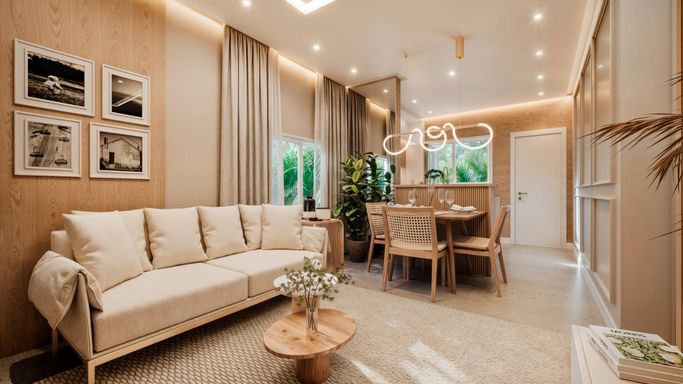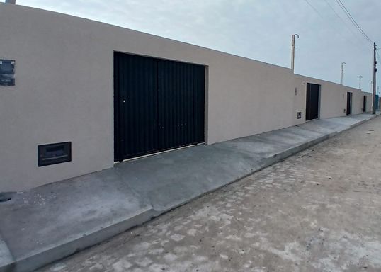 Casa nova térrea dividida entre os ambientes: sala, 02 quartos sendo 01 suíte, banheiro social, cozinha americana, área de serviço, 02 Vagas de Garagem, quintal amplo.