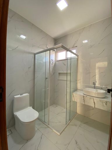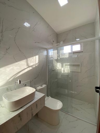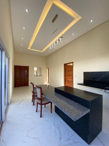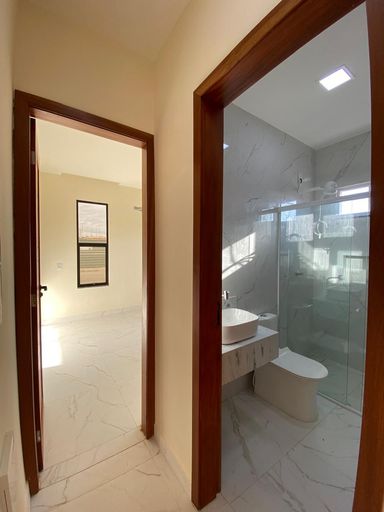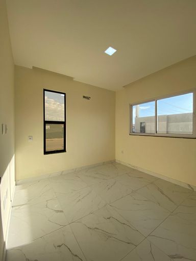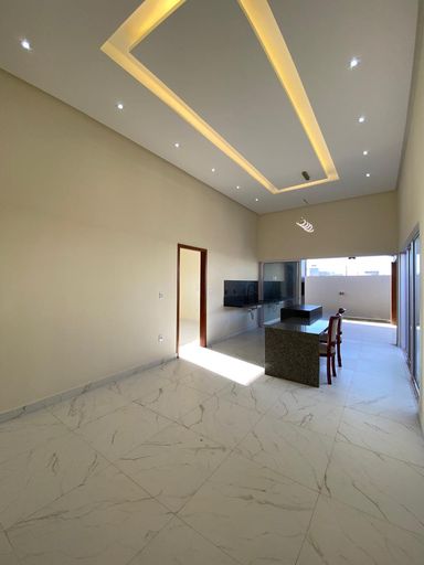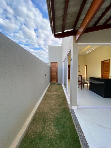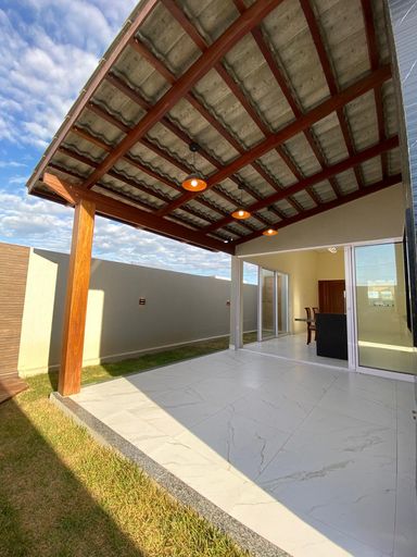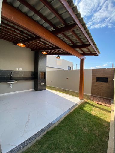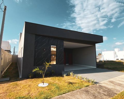 Casa com 115m² de área construída em um terreno de 200m², pele de vidro na fachada, 3 quartos sendo 1 suíte, Cozinha com ilha, Área gourmet com churrasqueira, 2 vagas de garagem.