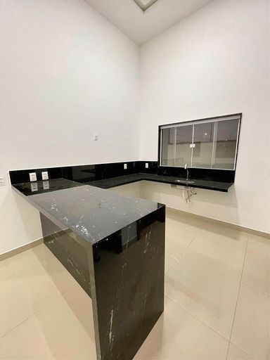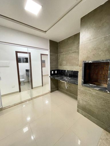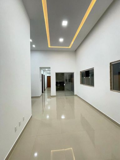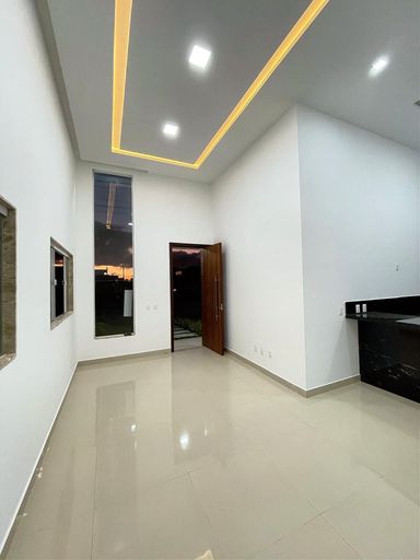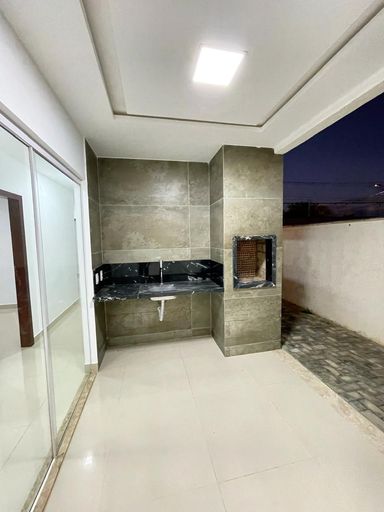 Casa térrea nova: Com 120m² de área construída, pé direito duplo, sala de estar / jantar, espaço gourmet com churrasqueira, cozinha, 03 quartos, sendo 02 suítes, área de serviço, banheiro social e garagem para dois veículos.