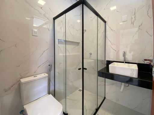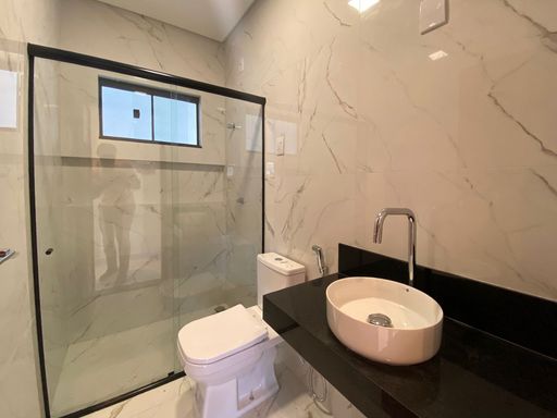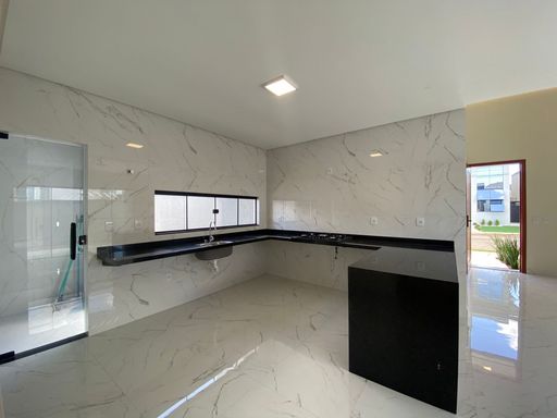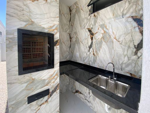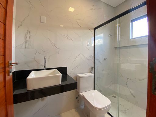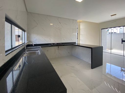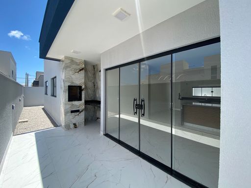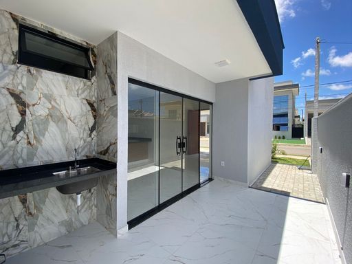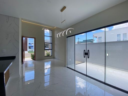 Casa com 121,55m² de área construída em um terreno de 200m², pele de vidro na fachada, 3 quartos, 3 suítes sendo 1 semi-suíte, Cozinha com cooktop integrada, Área gourmet com churrasqueira, 2 vagas de garagem.