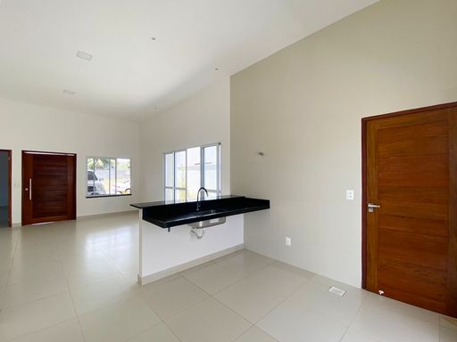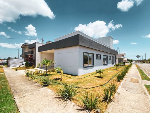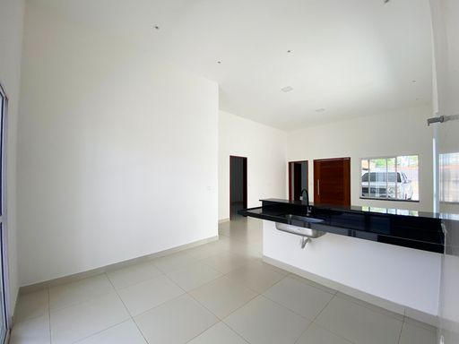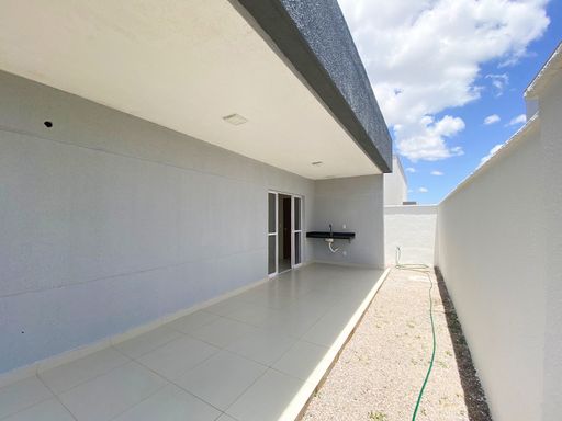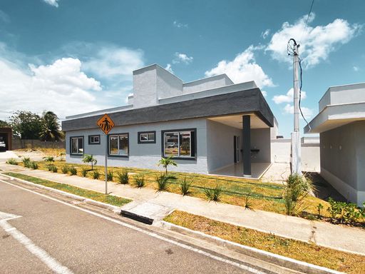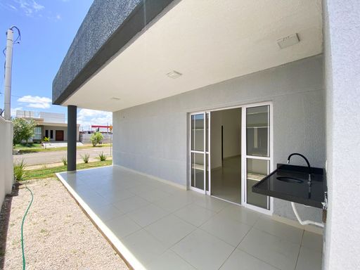 Casa nova, térrea com 132M² de área construída, sala de estar/jantar integrada com cozinha e área gourmet, 03 quartos, sendo 01 suíte e uma semi-suíte, área de serviço, área gourmet, banheiro social e garagem para dois carros, de esquina, lado da sombra.