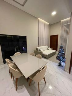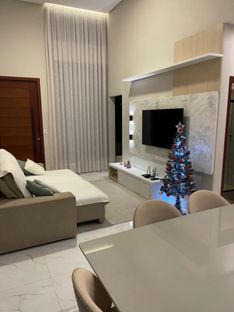 Imóvel mobiliado, com 150m² de área construída com acabamento premium, 3 quartos (incluindo 1 suíte master com closet), Sala com pé direito ampla integrada (estar e jantar), Cozinha projetada com espaço gourmet, Banheiros modernos e bem iluminados, Quintal privativo, 2 vagas de garagem.