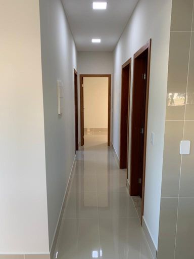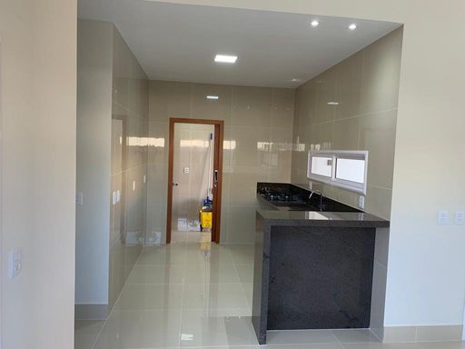 Casa térrea com 120m² de área construída, 03 Quartos, 02 suítes, 01 semi suíte, 01 wc social, Sala com pé direito alto, cozinha, Área Gourmet com Churrasqueira.
