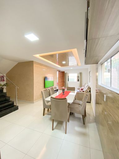 Casa duplex reformada, dividida entre os ambientes: Sala de Estar/ jantar, espaço gourmet, 04 dormitórios sendo 01 suíte com closet e varanda, 01 semi-suíte, sala de TV, 01 banheiro social, cozinha, área de serviço, 02 vagas de garagem coberta, energia solar instalada.
