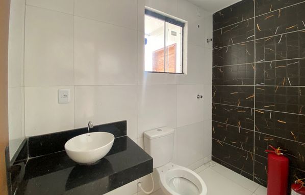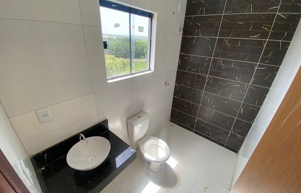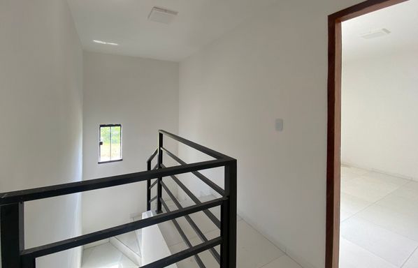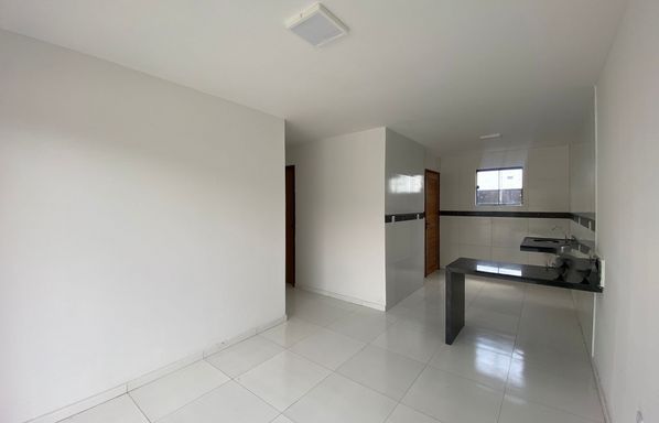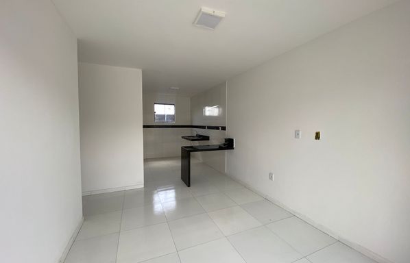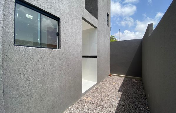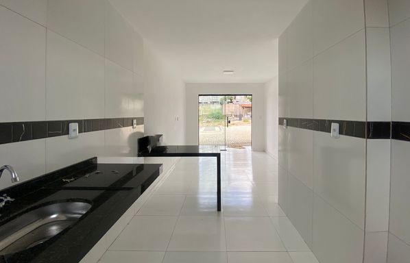 Área construída de 90 m², Casa duplex de 3 quartos, sendo 2 suítes, Quarto no térreo, Sala de estar e jantar integradas, Cozinha americana, 1 banheiro, Área de serviço, Quintal privativo, 1 vaga de garagem.