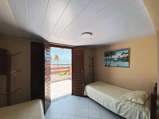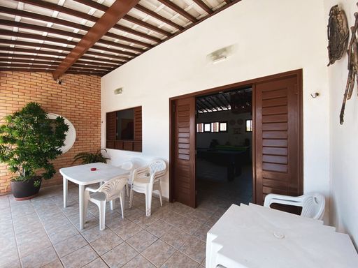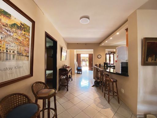 com entrada interna e externa, 3 suítes, duas delas com varanda e vista para o mar, sala grande jogos.