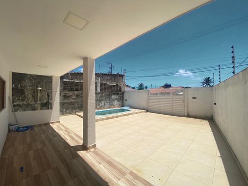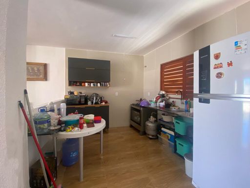 casa beira de pista, a 50 metros da praia, com 166m² de área construída, num terreno de 275m², 2 quartos sendo 1 suíte, 1 banheiro social, sala, cozinha, varanda, piscina, garagem para até 4 carros.