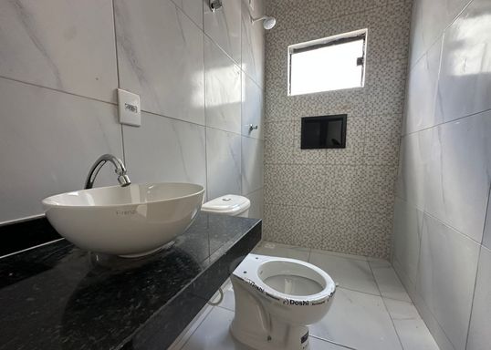 A casa 70m² de área construída, num terreno de 200m², possui 2 quartos sendo 1 suíte, sala para dois ambientes, cozinha com bancadas em granito preto, banheiro social, área de serviço, amplo quintal, garagem para dois carros cobertos.
