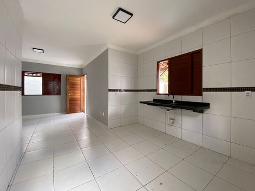 Casa usada térrea dividida entre os ambientes: sala, 02 quartos, banheiro social, cozinha americana, área de serviço, 02 Vagas de Garagem, quintal amplo.
