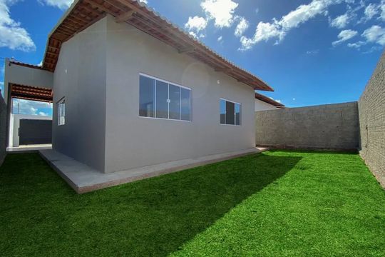 Casa nova térrea dividida entre os ambientes: sala, 02 quartos sendo 01 suíte, banheiro social, cozinha americana, área de serviço, 02 Vagas de Garagem, quintal amplo.