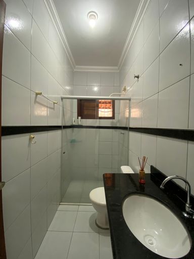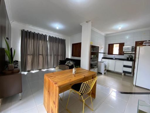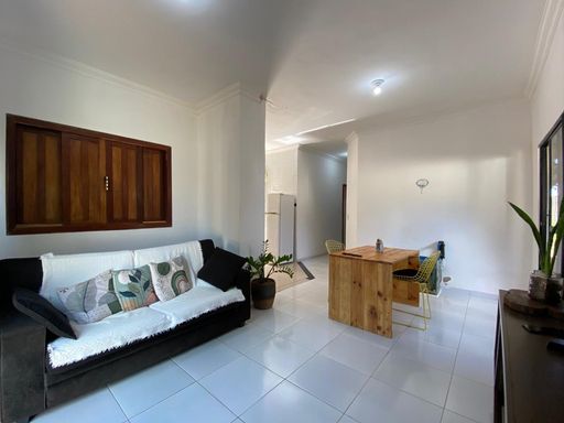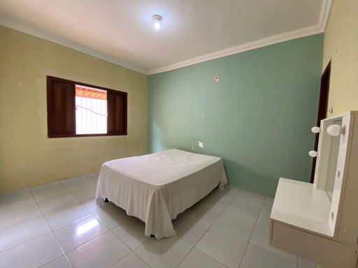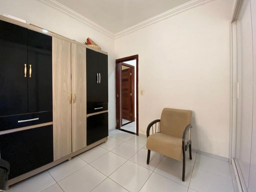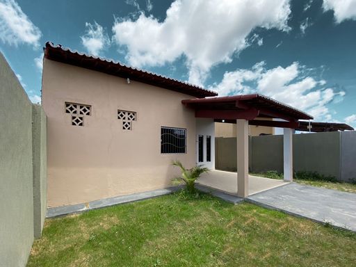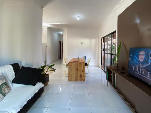 Casa com sala para dois ambientes, 03 quarto sendo uma suíte, cozinha integrada a sala, com armário na pia, 01 banheiro social com blindex, revestimento até o teto, área de serviço, garagem coberta para dois carros, amplo recuo de 4 metros na frente, quintal, lado da sombra.