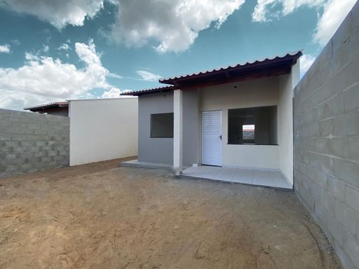 Casa nova térrea dividida entre os ambientes: sala, 02 quartos sendo 01 suíte, banheiro social, cozinha americana, área de serviço, 02 Vagas de Garagem, quintal amplo.