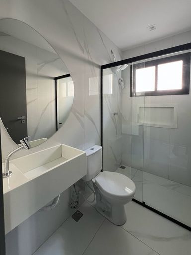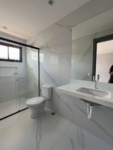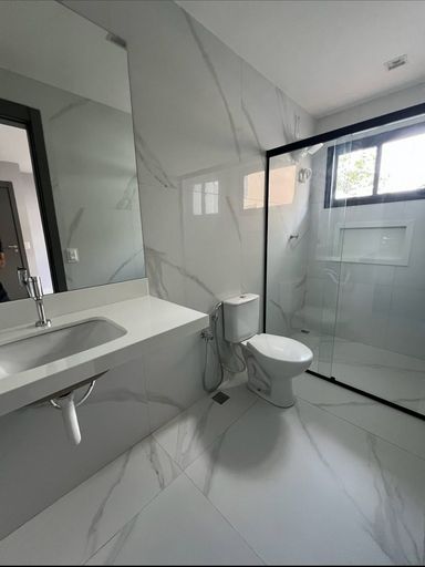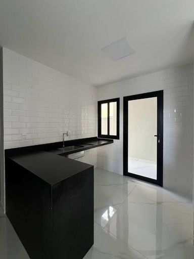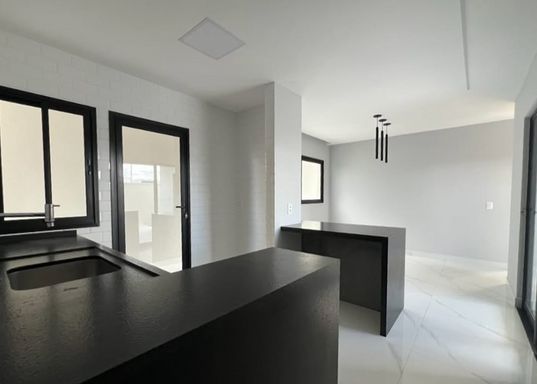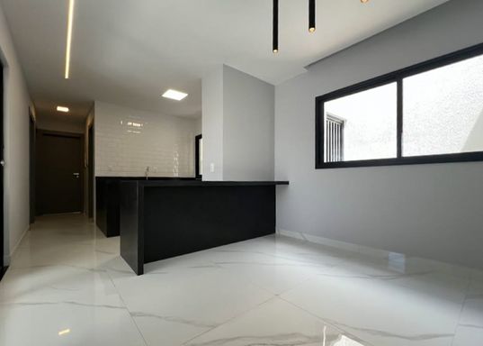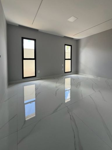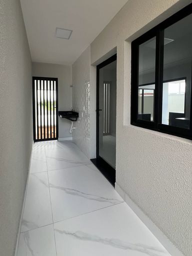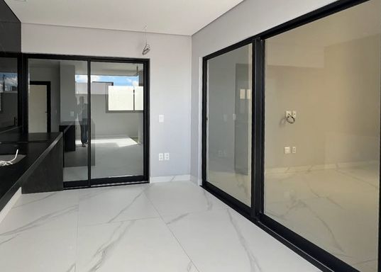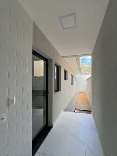 Acabamento de primeira linha, espaços integrados, porcelanato, bancadas da cozinha em granito preto San gabriel, e espaço gourmet com churrasqueira revestida em porcelanato preto, banheiros com bancadas em nono glass, torneiras Cubas e sanitários deca, porta principal com acabamento ripado, janelas na sala com película de vidro, janelas em vidro com esquadrias de alumínio preto área de serviço, instalações prontas para ar condicionado, banheiro com blindex, portões nas laterais da casa, uma tomada na garagem para uso de veículos elétricos, espaço para jardim.